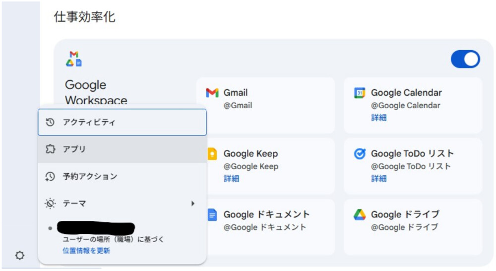 まずは、GeminiがあなたのGmailやGoogleドライブにアクセスできるように設定します。