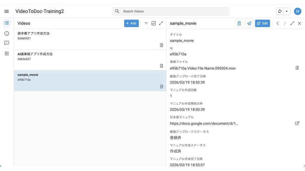 動画を撮影して、アップロードするだけで、動画の内容をまとめたマニュアルが完成します。
