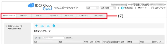 (7) 「仮想マシングループ」タブ 仮想マシングループの管理・操作を行います。