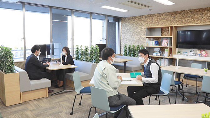 「座席を選べることにより、例えば、今週はこの業務があるからこの人と一緒にチームを組んで座ろうなど、自由な座席の選択ができるようになりました。固定電話をスマートフォンに変えたことで、フリーアドレスをしっかり活用できるようになったので部署間のコミュニケーションも以前より増えたと思います」