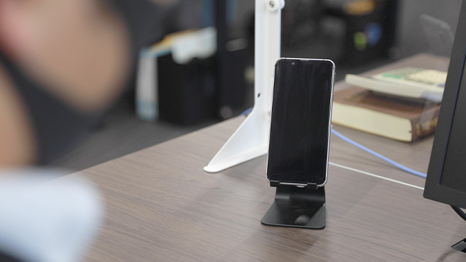 電話に気付きやすいようにスマホスタンドを一緒に貸与。