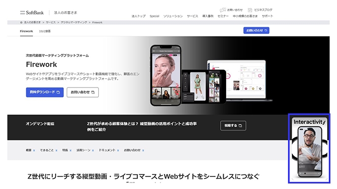 通信インフラだけでなく、企業のDX化やAI活用などの提案にも取り組んでいるソフトバンク株式会社では、マーケティングに利用する動画コンテンツを内製する際に、オウンドメディアに掲載する動画がどの程度マーケティング活動に貢献できているかを定量的に計測しにくい点に課題を感じていました。そこで、次世代動画マーケティングプラットフォームであるFireworkを導入。定量的な数字の可視化とともに、自動再生機能によって視聴数やCVRも向上させ、従来の動画プラットフォームと比較し視聴率20倍、CVR80倍へ成長を遂げることができました。