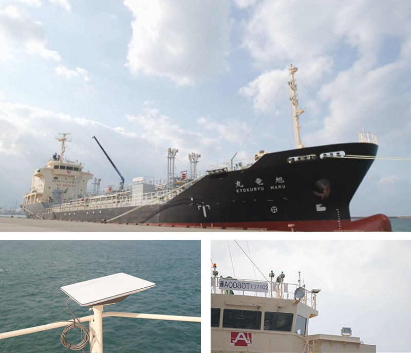トライアルを経て、旭タンカーが保有・管理する内航タンカー5隻への導入が完了しました。アンテナの設置は非常に簡単で、乗組員が取り付けを行った船もありました。