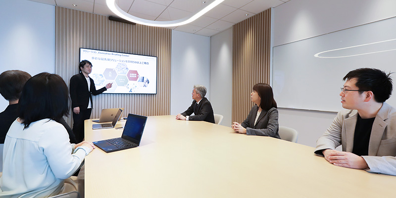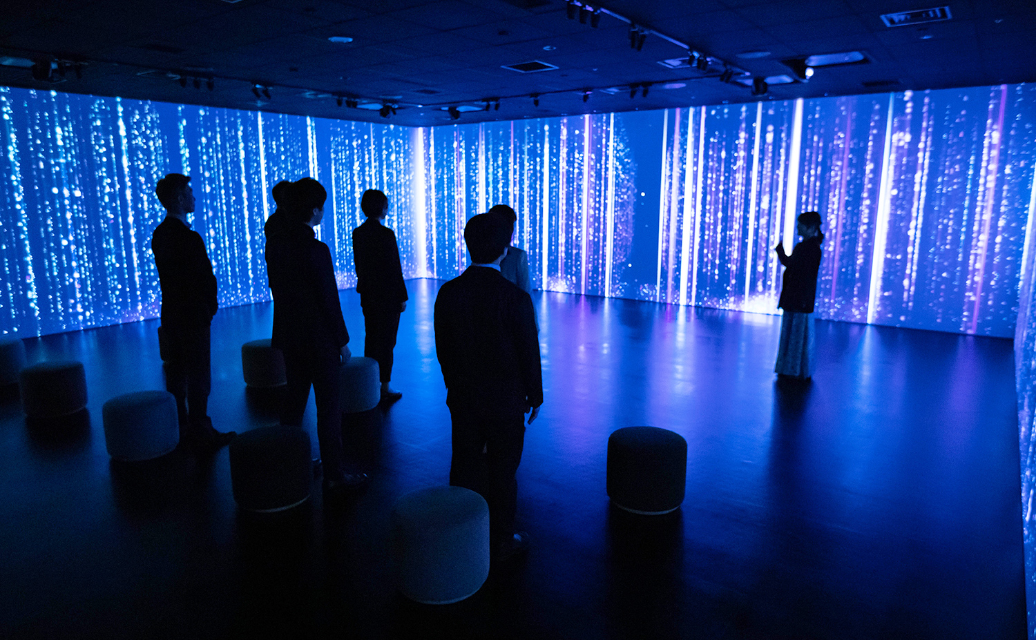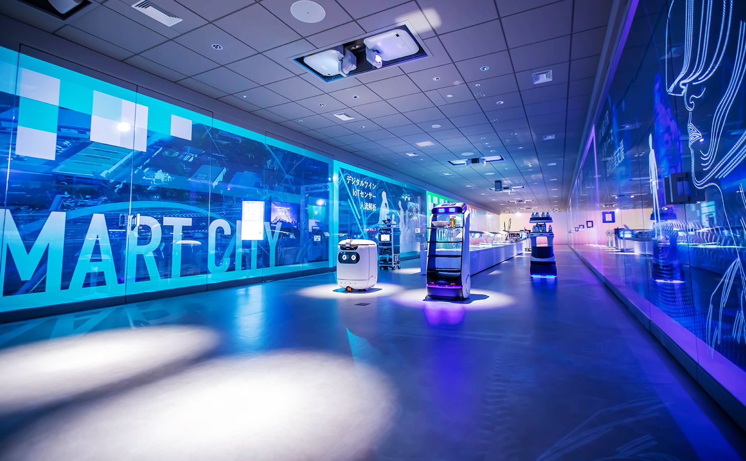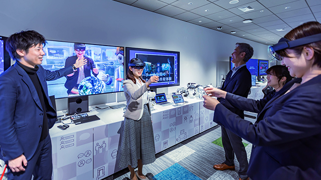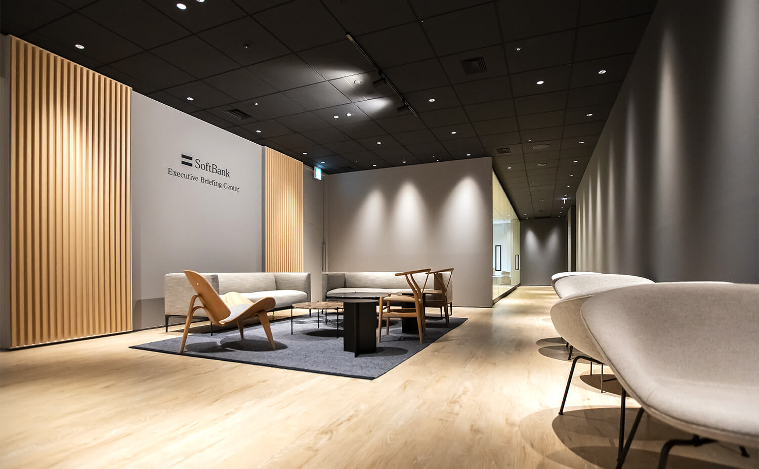 ソフトバンク竹芝本社ビル内に開設されたExecutive Briefing Center(EBC)。AI、IoT、5Gなどを活用した最新ソリューションが常時180以上展示されている体験型のブリーフィングセンターです。未来への道筋を具体的にイメージするための設備や仕掛けをご用意しています。