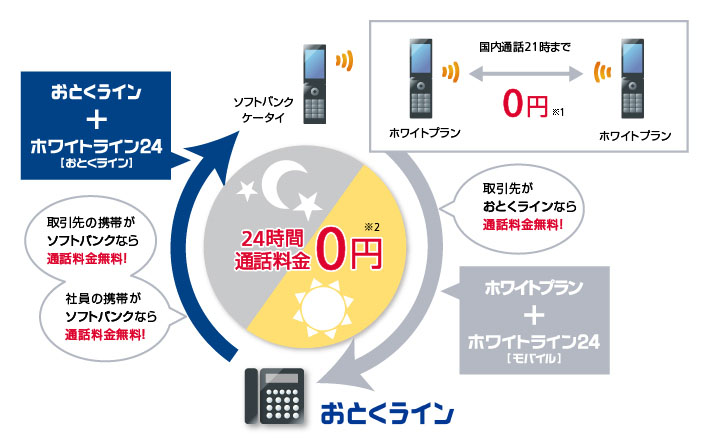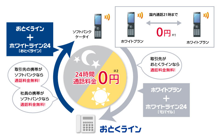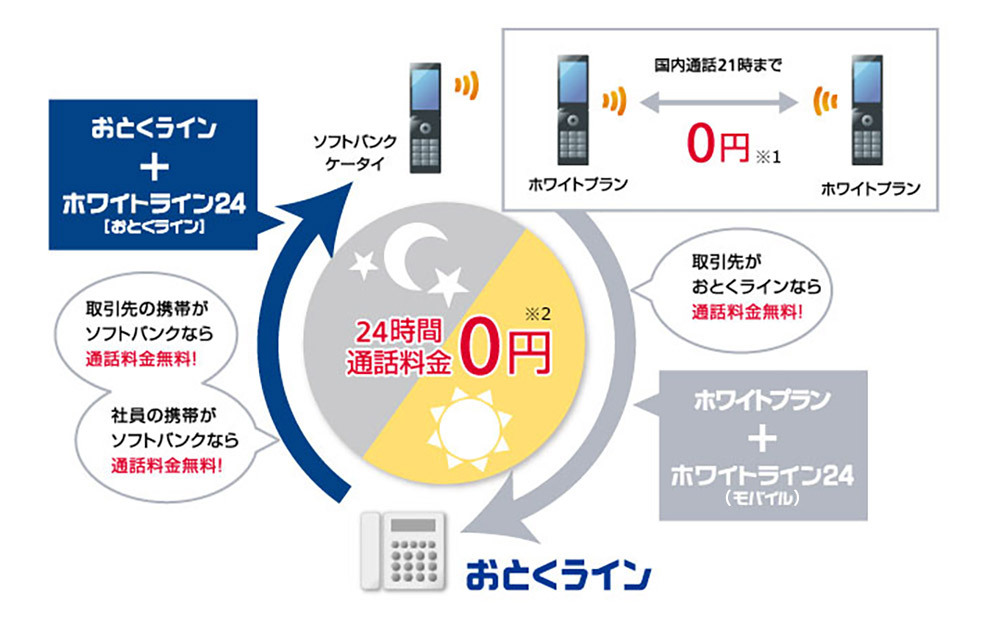 ソフトバンクの携帯電話から「おとくライン」※1への通話料金が無料となるオプション割引サービスです。