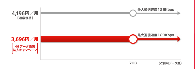 | 4Gデータ通信法人キャンペーン 3,696円/月※2※3※5 4Gデータ通信基本料:無料 |