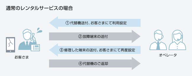 - モバイル端末レンタルサービス条項に規定するとおり、虚偽申告と認められる場合や故意、重過失の紛失・故障の場合など、本サービスの適用ができない場合があります。