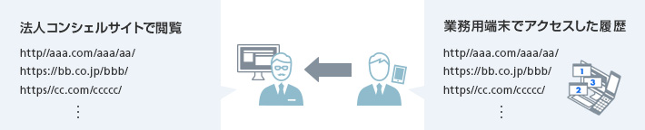 アクセス履歴閲覧(4G ケータイ)は社員の携帯電話のウェブサイト接続履歴を閲覧できるサービスです。
