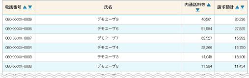 請求額の多い回線から順に上位50回線の請求額を表示します。