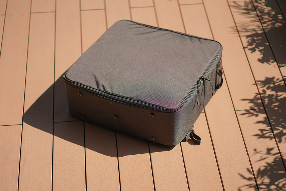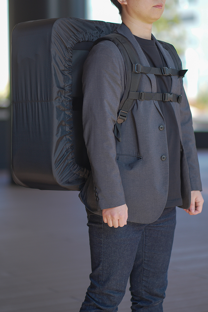 素材は、1680D(デニール、糸の太さを表す単位)のナイロン生地を採用し、軽量性を意識しながらも耐久性を高めました。また、Starlink Businessの機材運搬時に機材同士が当たって破損することを防ぐため、Wi-Fiルーターや電源アダプターにも同じナイロン生地の専用ケースを用意した他、雨天時にも運搬可能な耐水カバーを同梱しています※2。さらに、機材管理カードを差し込めるカードスリーブを、上面と側面の2カ所に用意しました。