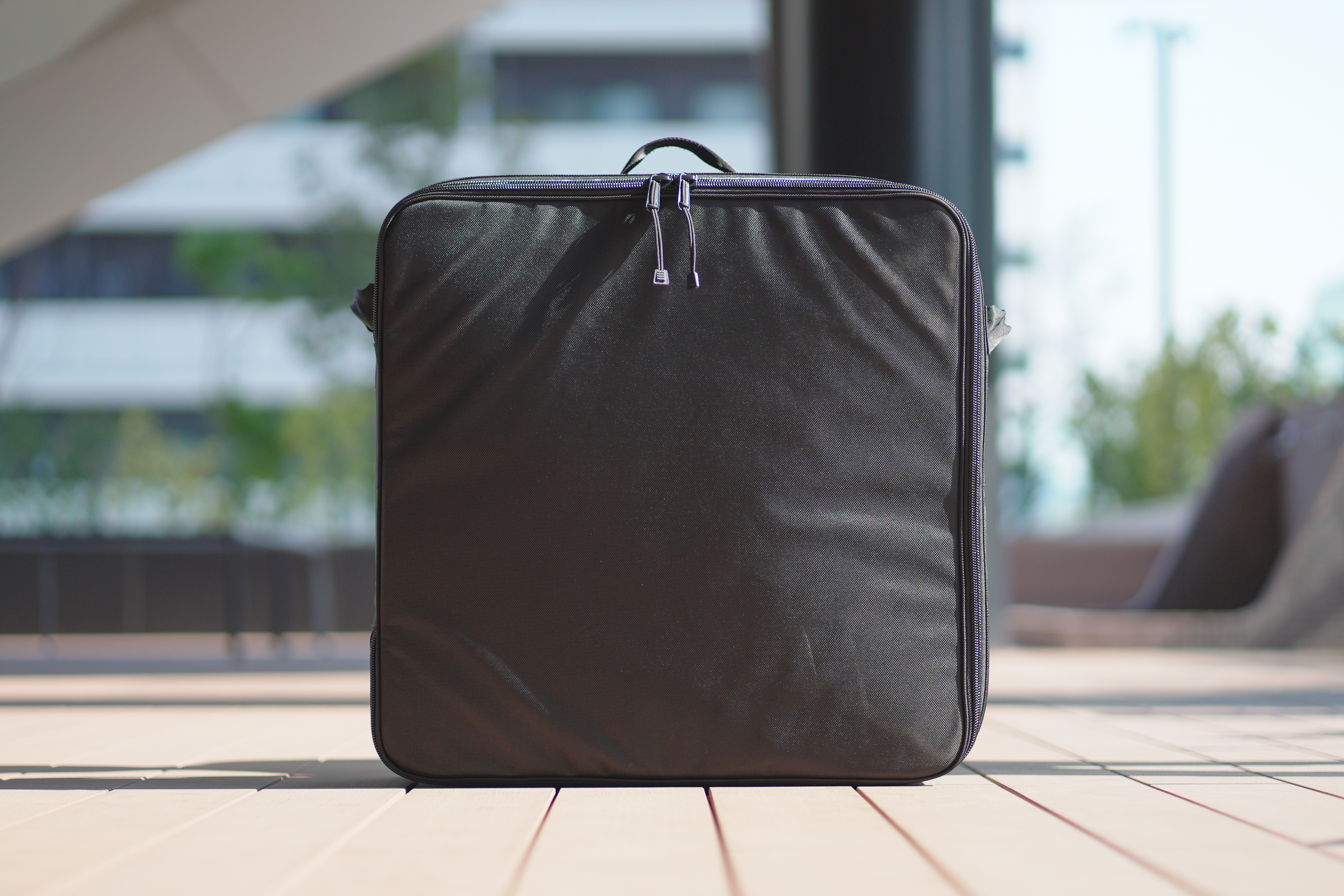 「軽量キャリーバッグ」は、総重量が市場では最軽量水準となる約6.3kg※1で、1人で持ち運べるようにショルダーベルトやキャリーカートに取り付け可能なバンドを採用し、可搬性を高めました。1人での持ち運びが難しい場合でも、両側面に用意した取っ手を掴むことで、2人でも持ち運びしやすい設計になっています。サイズは、約615×615×220mmで、Starlink Businessで現在提供中の2種類の機材(「HIGH PERFORMANCE KIT」と「FLAT HIGH PERFORMANCE KIT」)を梱包できる他、アンテナの外周に沿ったコンパクトな形状のため最小容積を実現しました。