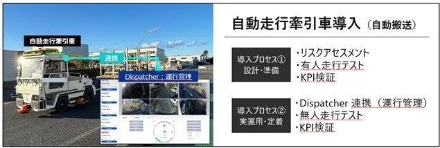 コマツ茨城工場における自動運転レベル4による自動走行牽引車の実運用を支援
