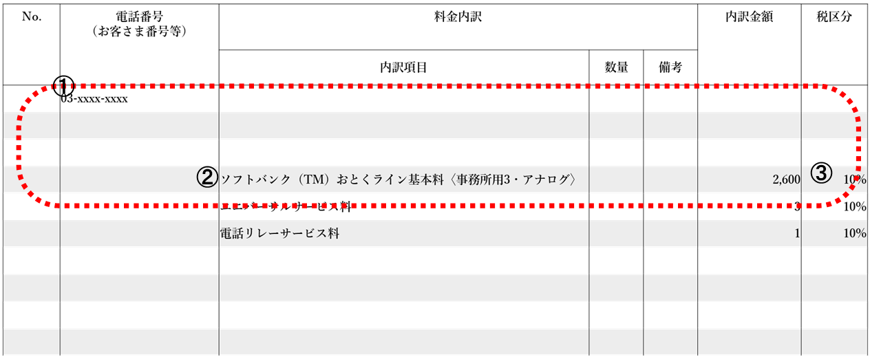ソフトバンクよりお客さまへ送付させて頂いておりますご請求書の赤枠部分にて、ご契約回線情報をご確認ください。