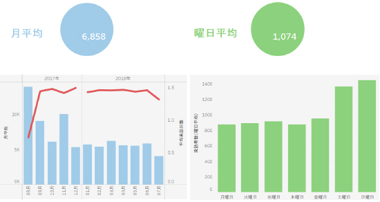 時間帯、曜日ごとの来店者数を可視化することで、パートタイム勤務者などのシフトの最適化が可能になります。 -