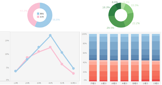実際に来店し、Wi-Fiに接続したお客さまの属性を統計データとして確認できます。