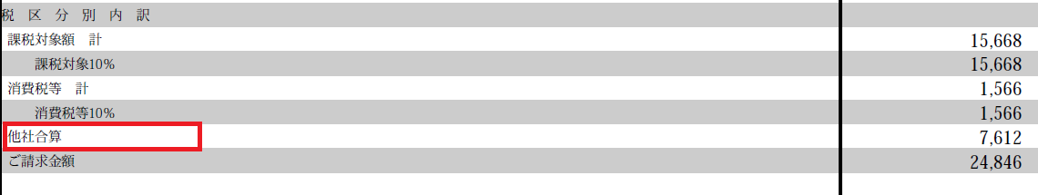 - ※国税庁HP 問94「立替金」に該当します。法人まとめ請求等では、他社発行分請求書に記載しているご利用料金は消費税計算の対象外として「他社合算」として表記いたします。各サービス提供事業者からお客さま宛の請求書は On the Net で画像ファイルをご提供しておりますので、そちらを適格請求書としてお取り扱いください。