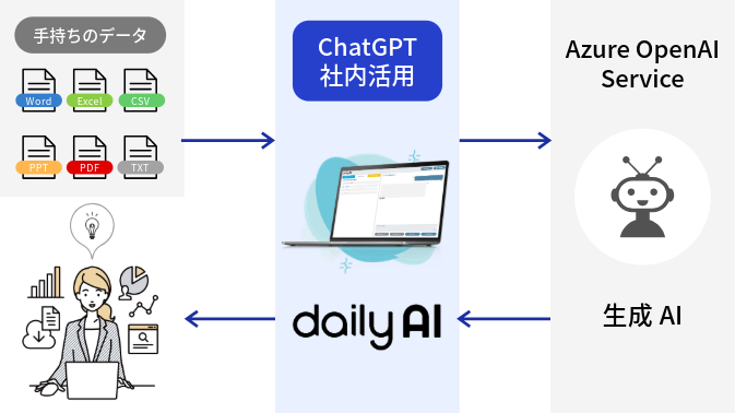 dailyAIは、Azure OpenAI Service を活用した誰でも簡単に利用できる生成AIサービスです。