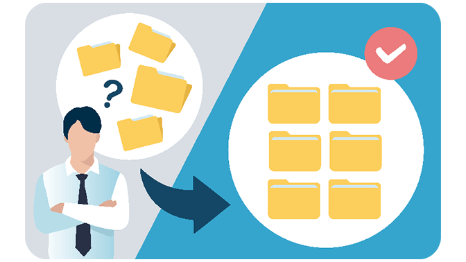 個々のPCに散存していたデータをクラウド上に一元化できます。作業者同士のデータの個別のやり取りを無くし、作業を効率化します。