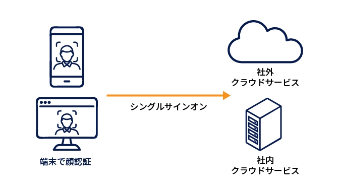 各種クラウドサービスのログイン認証をID/パスワード入力から顔認証に変更することで、生体情報を用いた統合管理が可能となり、利便性とセキュリティが向上するサービスです。