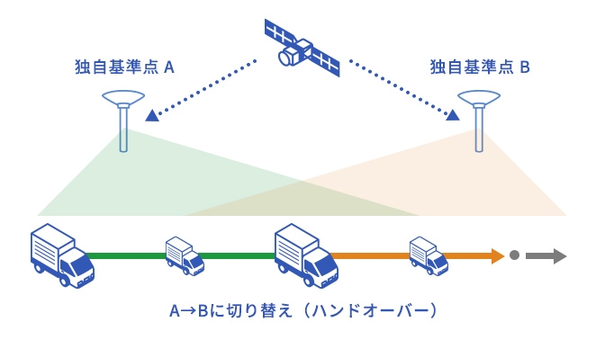 ソフトバンクは、自社の基地局の設置場所を活用することで、RTK測位に必要となる独自基準点(固定局)を全国3,300ヵ所以上に設置しております。お客さまによる基準点準備は必要なく、すぐに高精度な測位を開始できます。