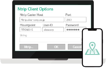 補正情報の送受信をNtripを用いてインターネット経由で提供することで、既存システムへの組み込みが可能です。