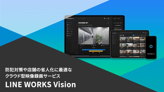 「LINE WORKS Vision」は、PCやスマートフォンから、いつでもどこでも高画質な映像をリアルタイムで確認できるサービスです。過去の映像も見返すことができます。先進的な店舗運営やセキュリティ強化につながるため、来店されたお客様が快適にお過ごしいただける環境づくりに貢献します。