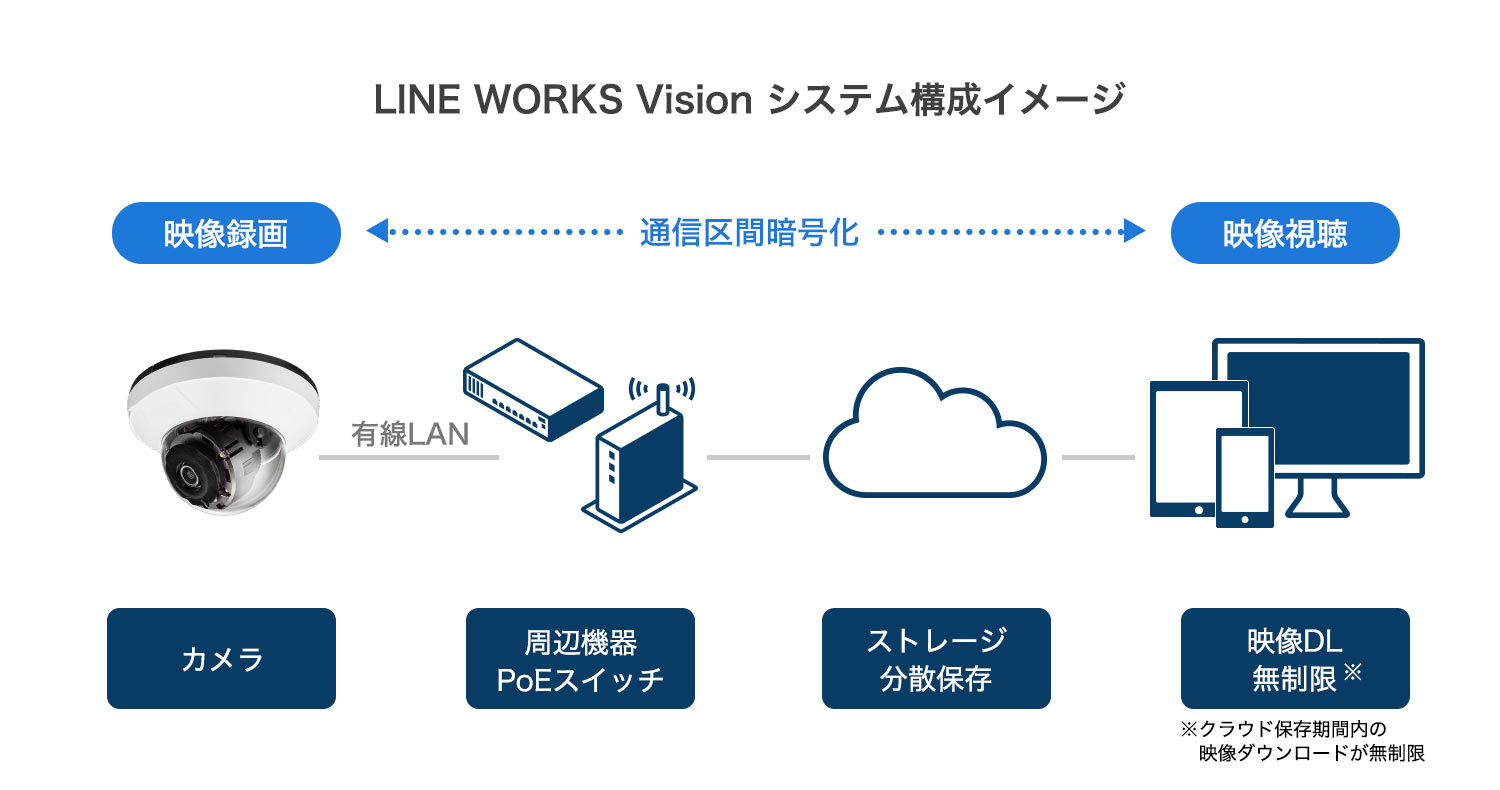 データは日本国内のクラウドサーバに保管。録画媒体の故障・盗難によるデータ滅失や、漏洩のリスクも軽減できます。