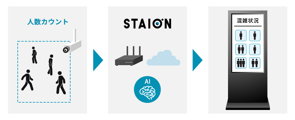 来訪客の人数カウント・属性分析はもちろん、混雑度のサイネージ表示により快適なまちづくりに貢献します。