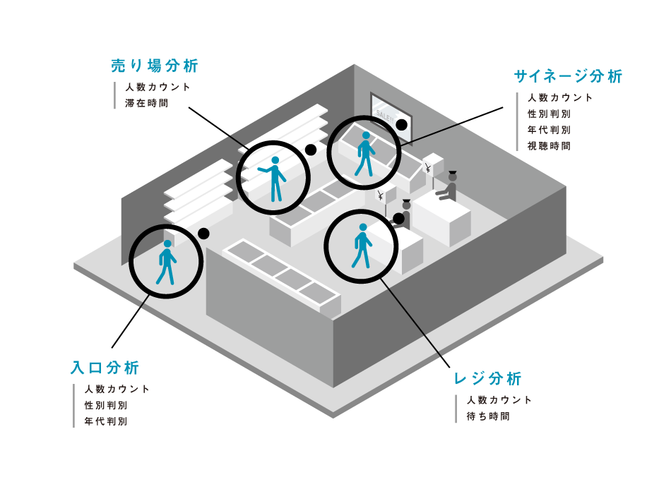 さまざまな業種や用途に対応しています。例えば、小売業では来客数や動線分析、製造業では品質管理と生産効率の向上に役立つデータを提供します。自社のニーズに合わせて最大限活用することができます。