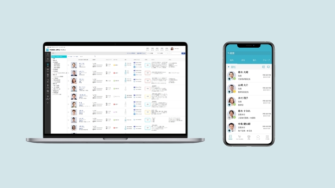 Web電話帳、名刺管理、フリーアドレスの居場所表示、人材スキル可視化、安否確認など、社員のコミュニケーションを変え、組織を強くするコミュニケーションポータルです。