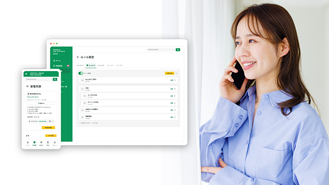 AIを活用した電話自動応答サービスです。お客さまの問い合わせに対して迅速に応答し、転送、メッセージの録音などが可能です。