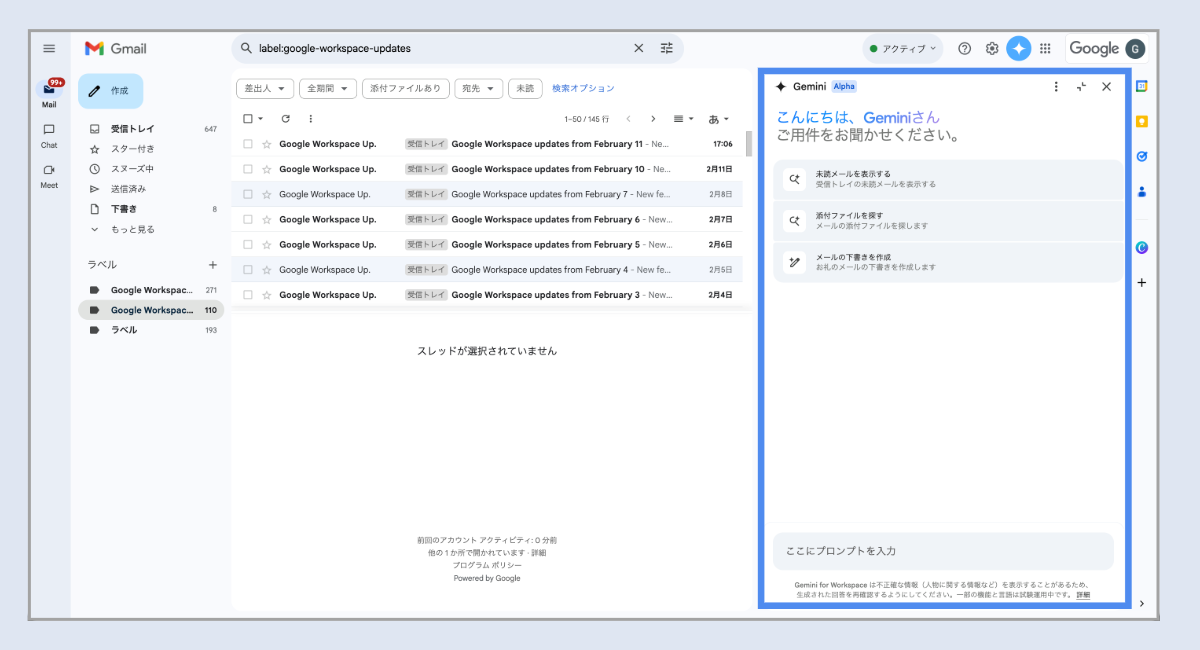 アプリやタブを切り替えることなく、サイドパネルからGeminiにアクセスできます。