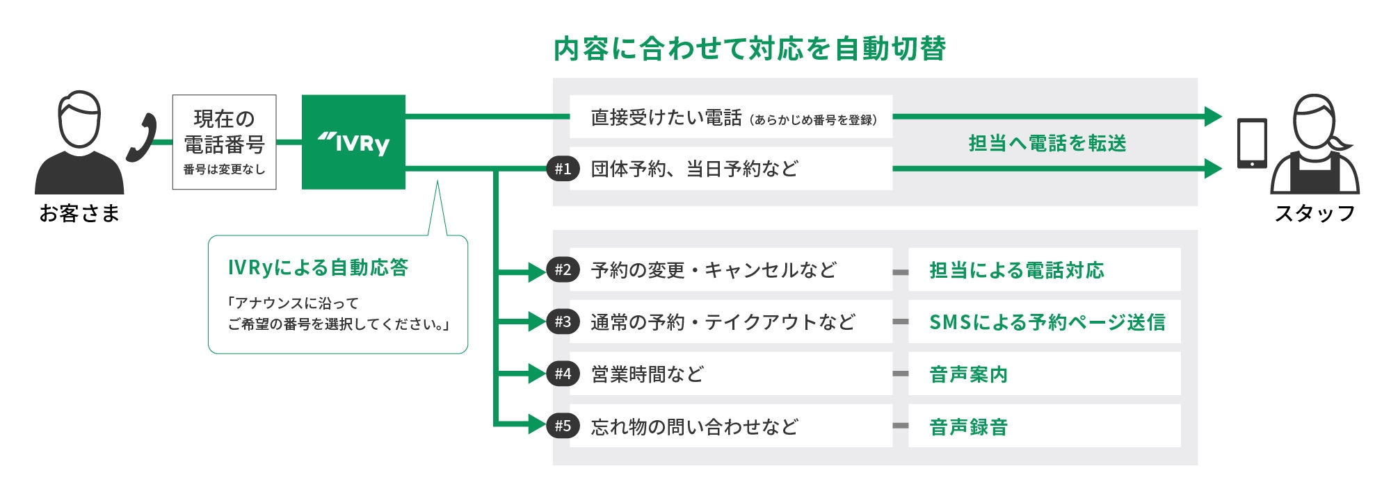 IVRyがスタッフ対応の必要な電話だけを厳選。営業時間外の予約など大事な電話も取りこぼしをゼロに。