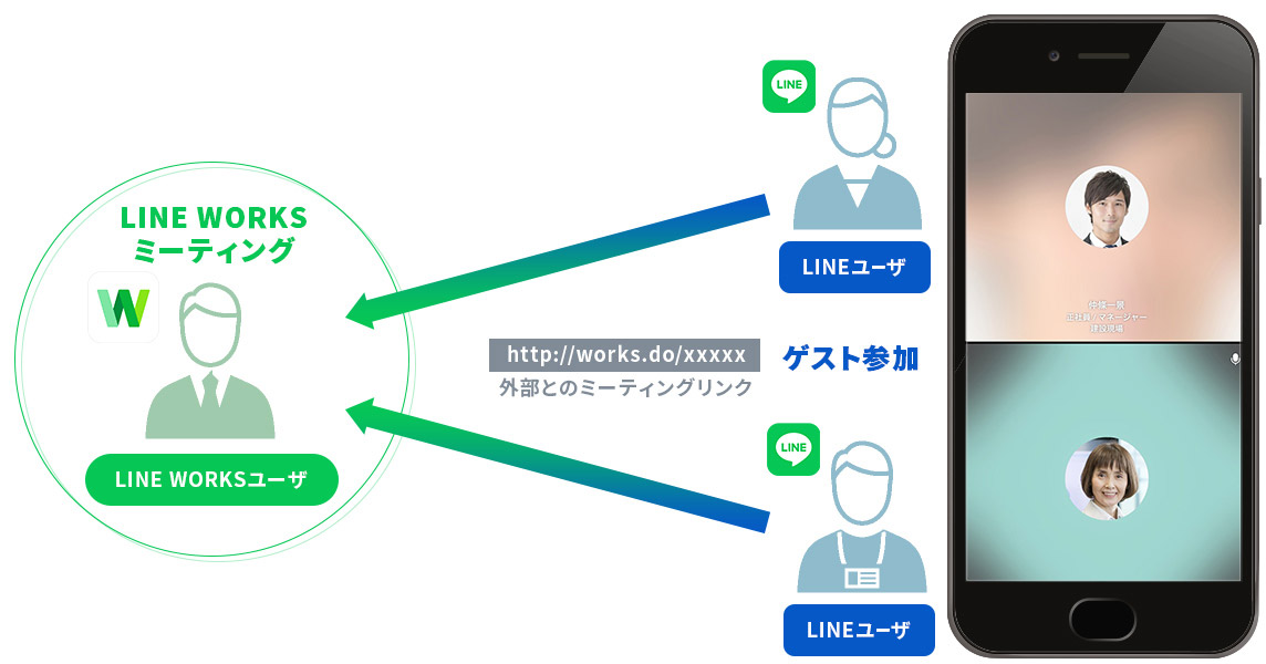 アカウントを持たない人(顧客や取引先)も音声・ビデオ通話によるミーティングに参加できます。