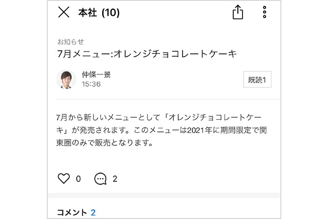 LINE のように既読の状況を表示。さらに既読メンバーも確認可能。