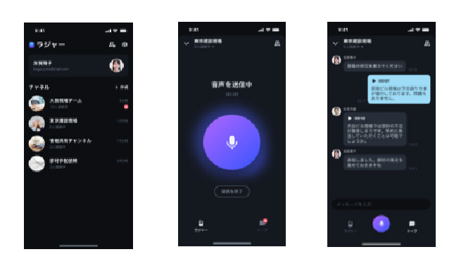 オフィスメンバーはチャットで、現場メンバーは音声でそれぞれの方法で会話が可能。