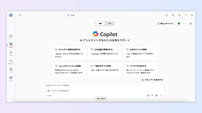 日常業務で使用しているMicrosoft 365アプリ上で、プロンプト※を入力するだけで使うことができます。直感的に操作でき、誰でもすぐに使いこなすことができます。
