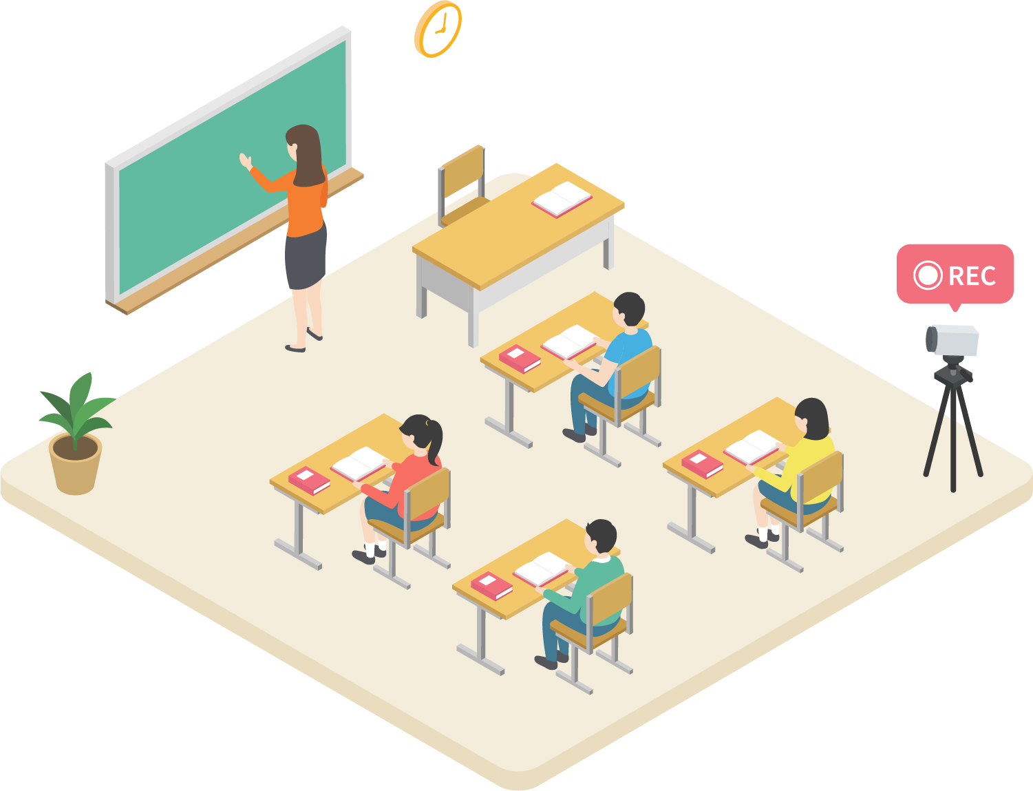 授業を撮影し、撮影した動画をアップロードするだけで、簡単に動画を共有、専用のポータルサイトから動画の視聴ができます。