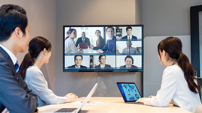 会議室にいるメンバーが画面や資料を瞬時に共有できます。