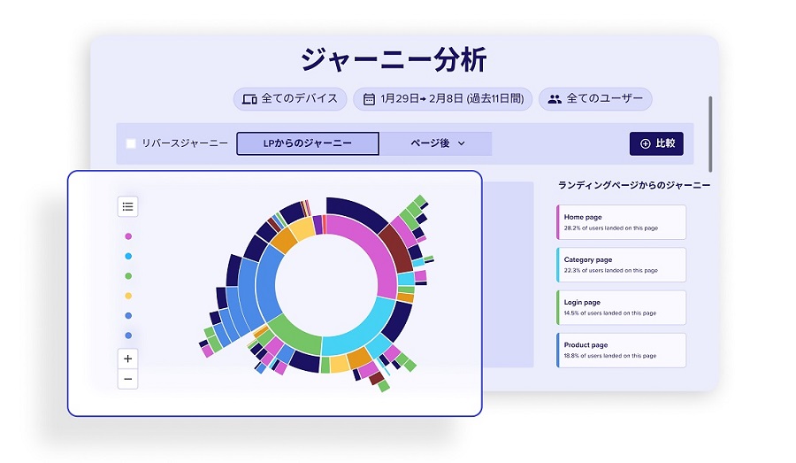 「Contentsquare」は、顧客の行動分析やサイトの最適化に必要なさまざまな分析機能を備えています。