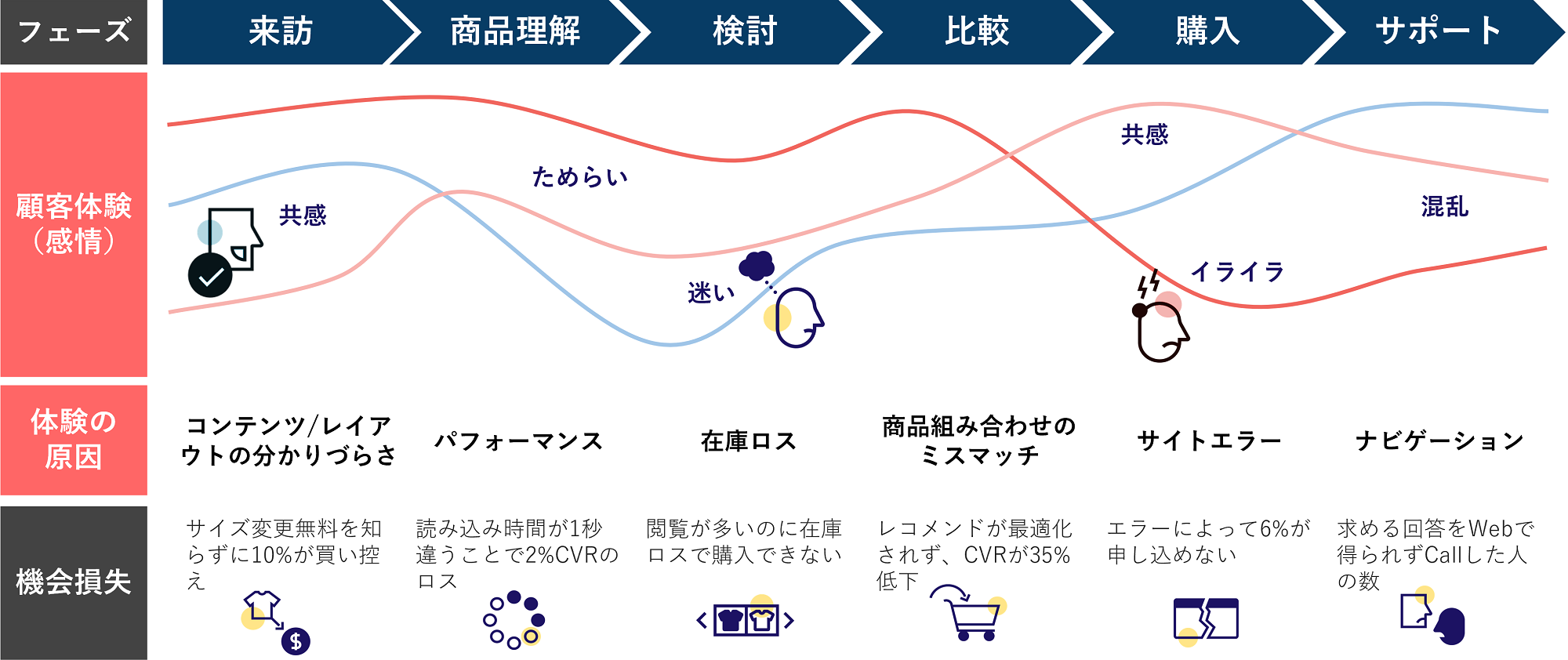 デジタル顧客接点の運営者は、分析ツールを使って来訪者の動きを理解しようとしています。しかし、従来の分析で分かるのは購入した・しなかったという結果だけで、なぜ購入したのか・しなかったのかは分かりませんでした。