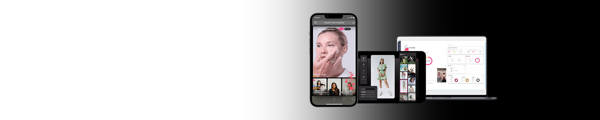 自社ECサイトやアプリ上でライブコマースと縦型ショート動画を活用して、オンライン上に「リアル」なショッピング体験を提供。深い顧客接点を作り、CVR改善やLTV向上を実現します。