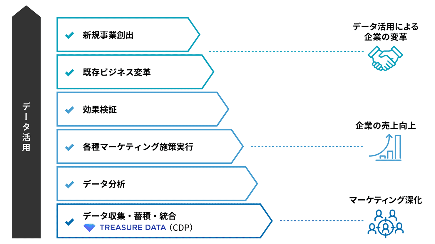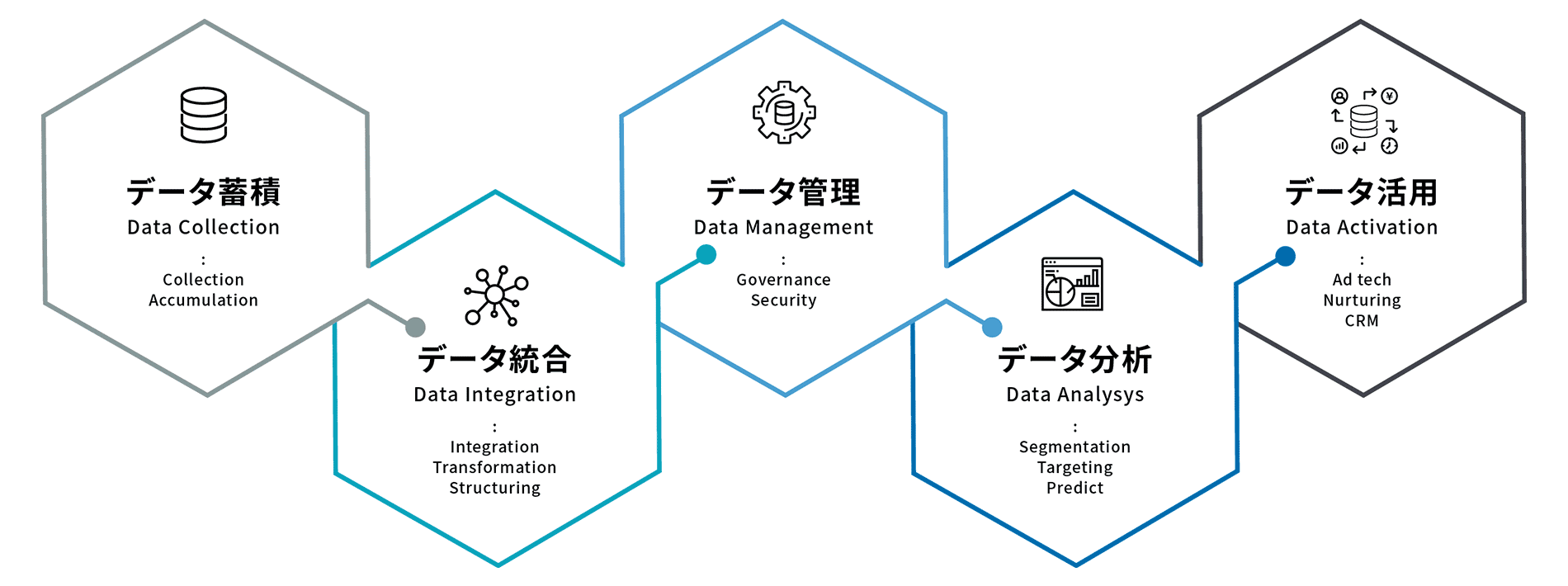 散在するデータを統合することで、自社のビジネス状況を正確にかつ迅速に理解し、また顧客体験の向上に必要な顧客理解の深化を行うことができます。