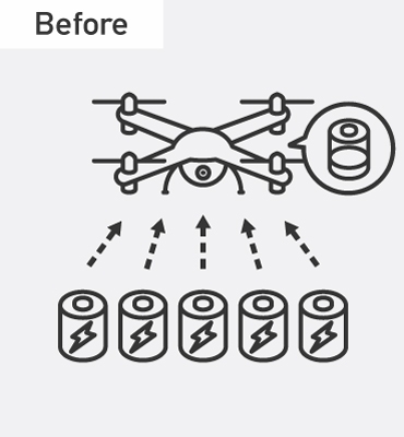 電気自動車の走行距離を延ばすために開発されているエクステンダーを搭載し、内蔵バッテリーを常に充電しながら飛行することで、従来のバッテリー式ドローンに比較にならないほどの長時間の航行を実現し、測量現場など長距離航行が求められる現場で活用できます。
