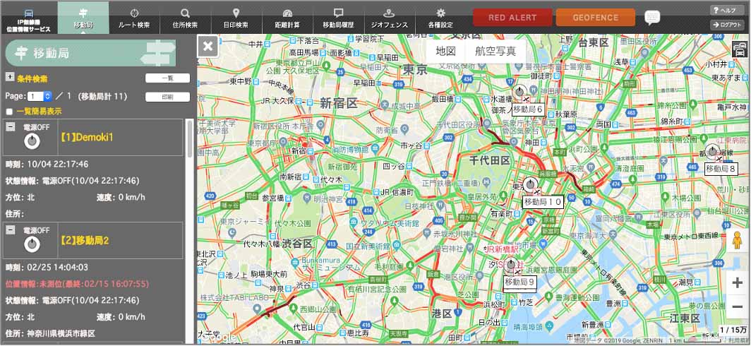 移動局の現在位置や進行方向、各種状態の確認や過去の履歴検索ができます。
