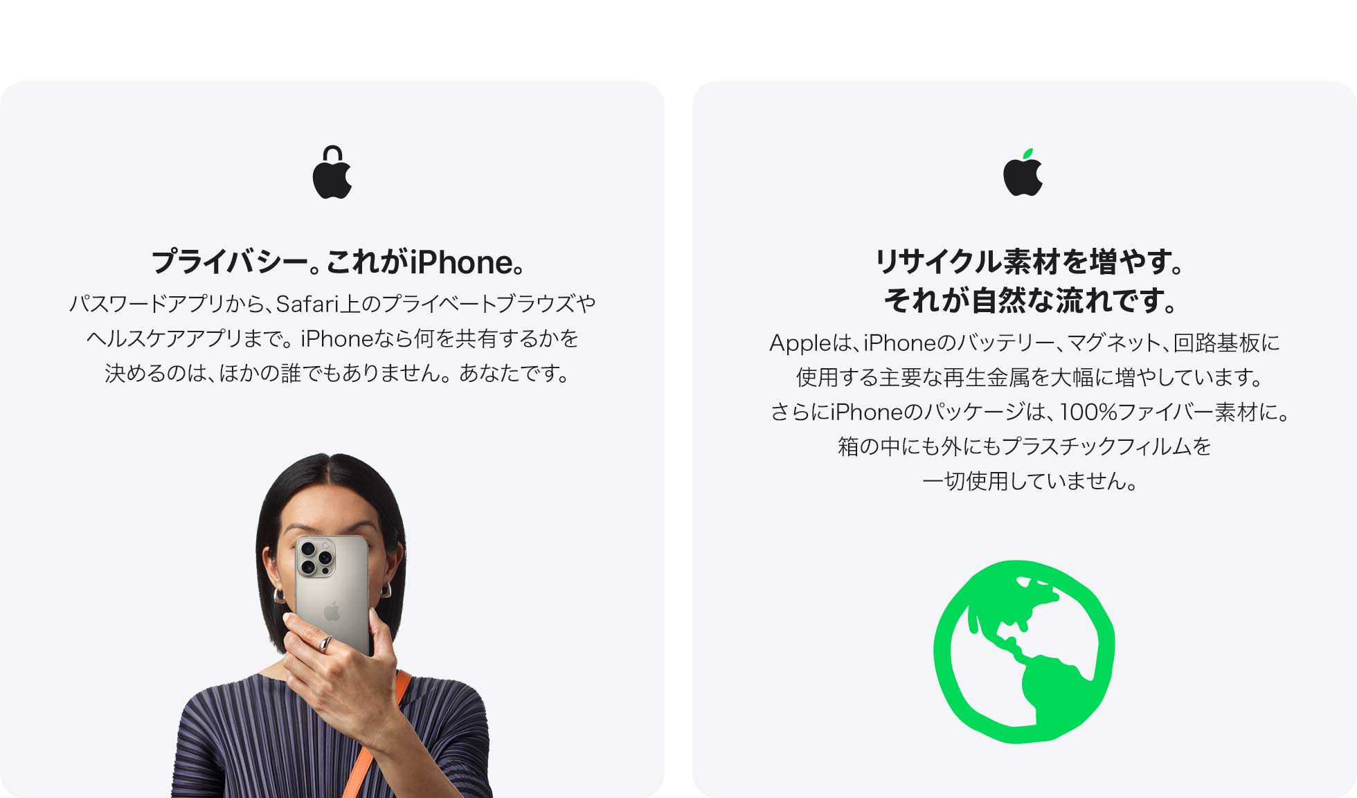 - 電源とバッテリー:バッテリー駆動時間は使用条件と構成によって異なります。 詳しくはapple.com/jp/iphoneをご覧ください。