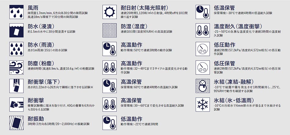| 耐衝撃 | MIL-STD-810H |