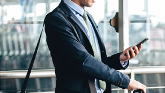 DIGNO® BX2は従来機種※1よりバッテリーを大幅に増量。長時間使え、出張時にも安心です。