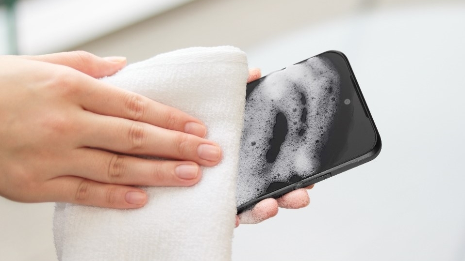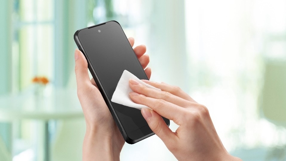 IPX5/IPX8の防水とIP6Xの防じんに加え、小売、飲食、医療など汚れの気になる環境でも泡ハンドソープで手洗い・すすぎ洗浄や手軽にアルコール除菌シートで拭ける耐薬品性能※8を備えています。
