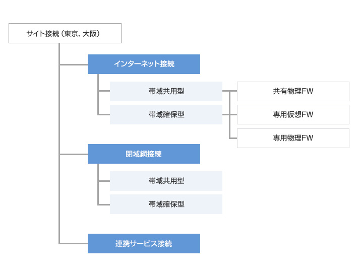 インターネット接続とファイアウォール、閉域網接続の有無を選択いただけます。